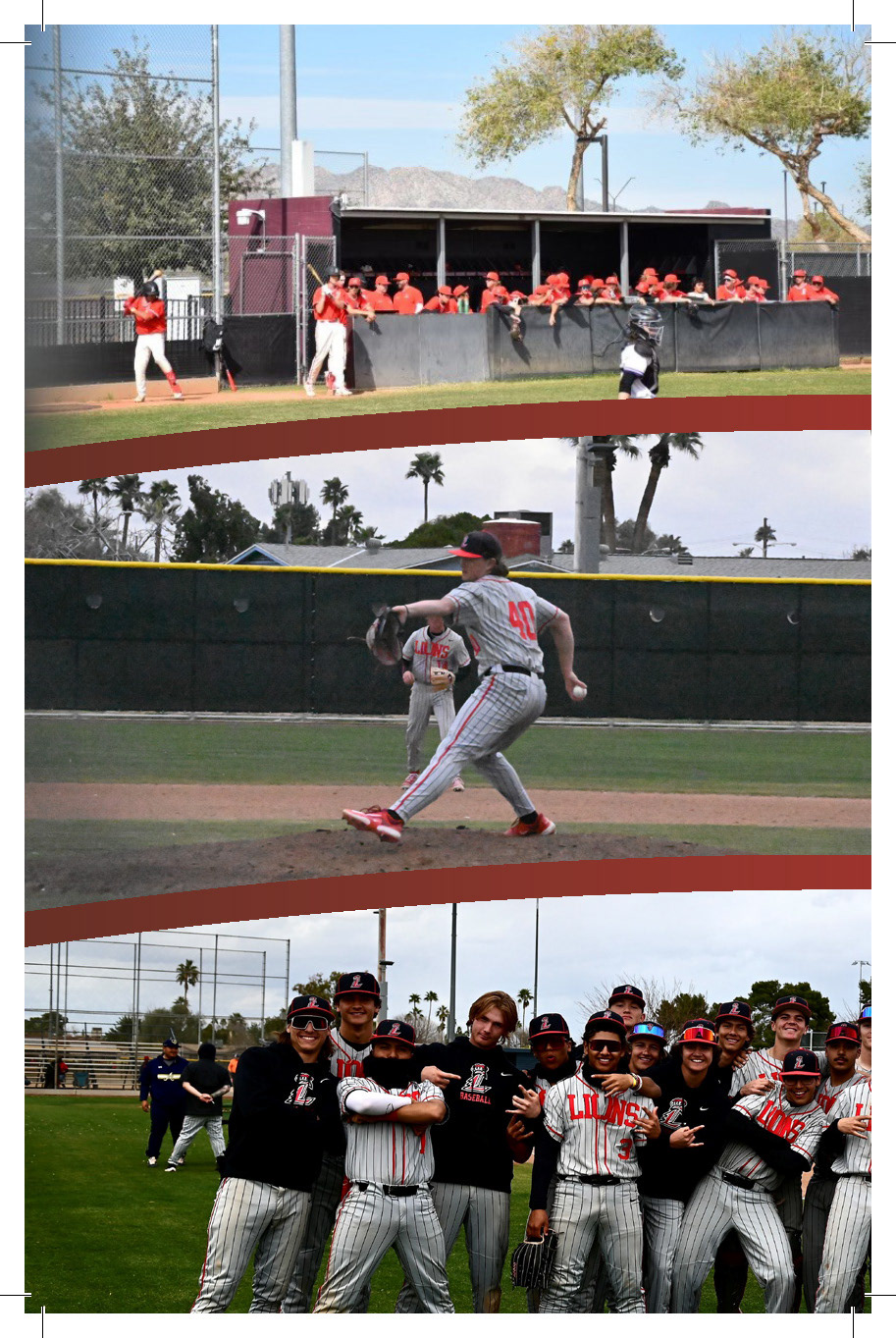 High School Baseball Seasonal Program booklet design. Page snippets included here of various page layouts. Created using a InDesign and Illustrator workflow.